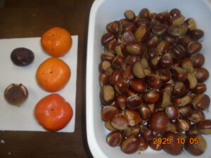 今朝木立をひと回りすると、イチジク、カキ、クリがありました。