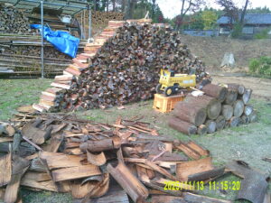 今日で一昨年の春に伐採した杉の丸太を全部割り終わりました。