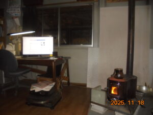 使っている薪ストーブはホンマ製の時計型ストーブ〈AS-60〉だけど、今日のように最高気温が10℃に達しないような寒さになると、本領を発揮します。