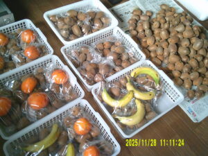 バナナは安価だし、カキはまだ菜園にたくさん生っています。