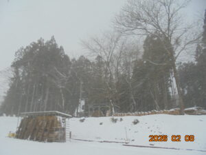 また雪が降り始めました            2026 2.8 5:00PM 木立前にて