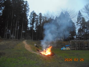 もちろん微風〈無風〉で湿度の高い日を選び、近くには200ℓの防火用水を備えてあります。