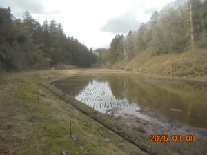 ※ 右上写真で、我が山林の裾あたりが若干きれいになっているのは、山田で稲作をなされている方が除草等の手入れをしているようです。