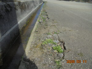 道路脇には除草剤を撒き、草が生えたり大きくなったりしないようにしている。