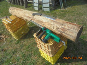 杉を伐採したとき、幹の直径20㎝ほどの部分を1,8m長に切り、薪にしないで残してあったものです。