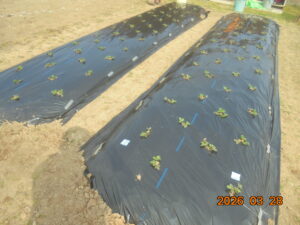 苗がもっと大きくなるとマルチシートを被せるのが困難になってきます。