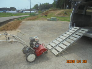 彼が帰った後、木立前の畑を耕すために菜園から耕運機を運んで来たのですが、車から降ろしたときにふと思いました。