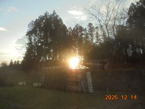 日没時〈日没といっても4時前〉に一瞬晴れ間がありましたので、外に出ました。(右上写真)